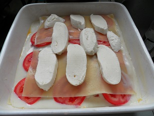 Mettez les dernières pâtes à lasagne, disposez dessus la mozarella coupez en tranches