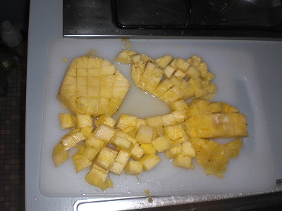 faire fondre le beurre et le miel dans une grande poele puis y mettre l'ananas et le fenouil, saupoudrez avec le sucre cassonade et laisser cuire pendant 10min, il faut que le fenouil soit un peu ramoli.